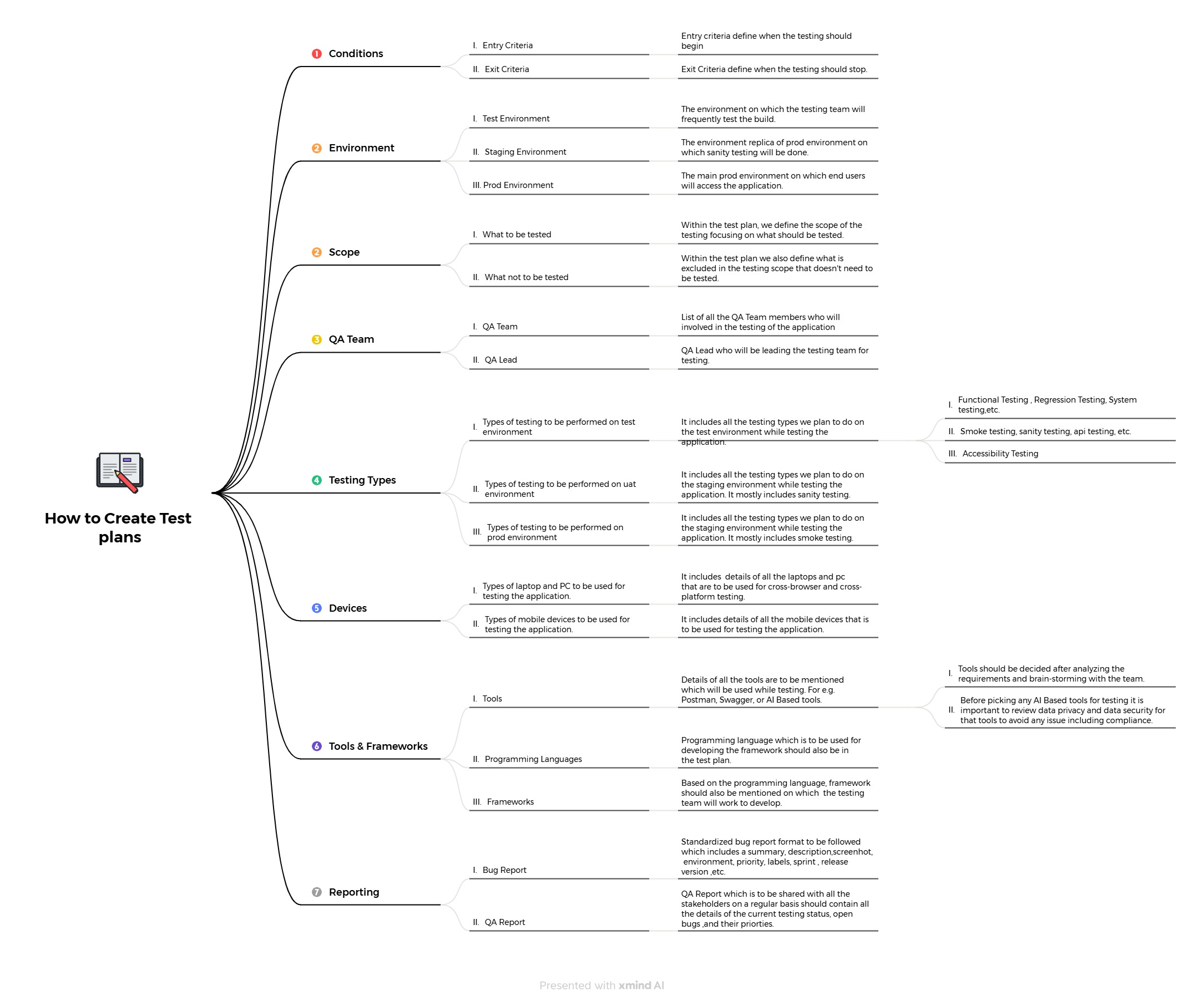 This mind map focus on all the components that have primarily required while creating the test plans.