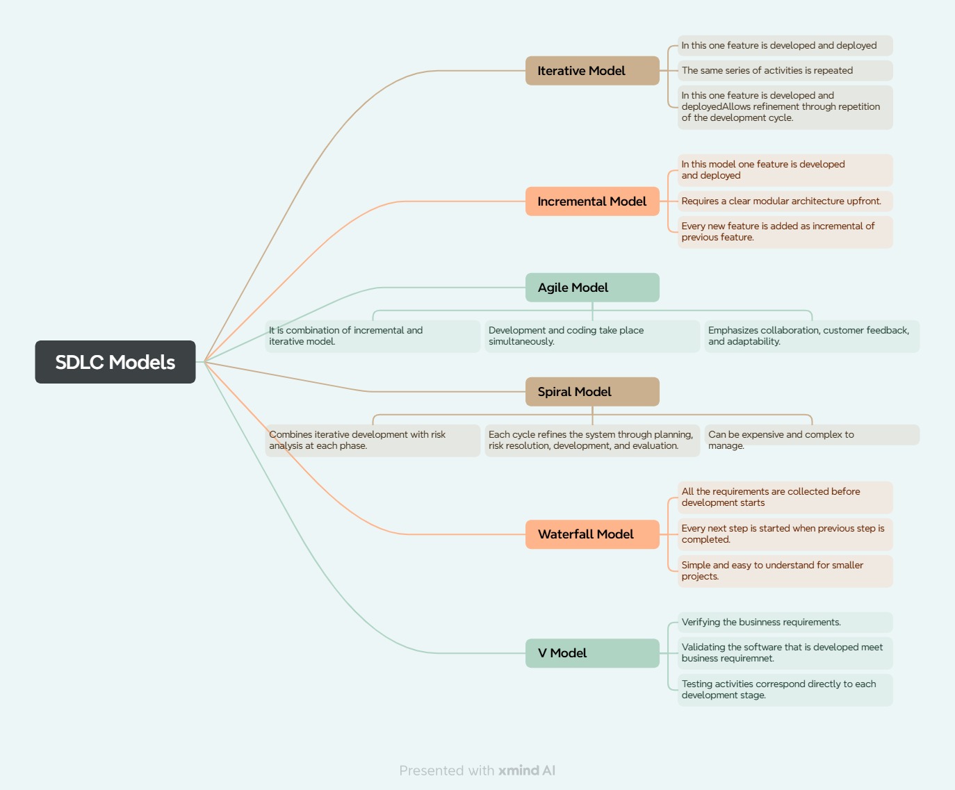V-Model : The V-Model, also known as the Verification and Validation Model, ensures that the developed software meets business requirements through rigorous testing aligned with each development stage. This model emphasizes verifying and validating requirements at every phase to deliver a product that satisfies all defined objectives.